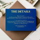 Carte de détails de mariage élégante et simple en bleu et jaune.