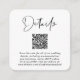 Mariage moderne détails carré carte boîtier avec "Details" dans un script contemporain chic. Entrez l'adresse de votre site Web mariage pour créer un code QR que vos invités peuvent scanner pour tous les détails tels que les directions et les logements et à RSVP en ligne. L'arrière présente votre photo superposée avec vos noms et date de mariage unis par un coeur.