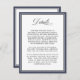 Cette carte simple et élégante de l'enceinte de mariage est conçue pour fournir à vos invités des détails spéciaux et des informations autour de votre jour de mariage. La carte blanche est bordée de bleu marine avec une fine ligne noire pour ajouter un peu de couleur au design. Vous pouvez utiliser cette carte de boîtier pour fournir des informations d'hôtel suggérées, des itinéraires, votre registre des mariages, votre site Web mariage et d'autres détails que vous souhaitez fournir. Modifiez simplement l'exemple de modèle de texte avec vos informations. Vous pouvez déplacer le texte, modifier le type de police ainsi que la couleur arrière - plan de cette carte.