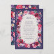 Red Floral Détails Mariage Carte de boîtier. Offrez à vos invités des détails mariages essentiels dans le style avec cette carte d'enceinte verticale, avec une couronne d'aquarelle fleurie dans les tons riches de bijoux de rose, de rouge profond, de blues et de violet, ensemble contre un arrière - plan bleu marine sophistiqué. Le motif de coordination à l'arrière ajoute charme et élégance. Parfait pour les mariages en toute saison, que ce soit pour une fête romantique d'automne ou d'hiver ou pour une soirée de printemps ou d'été animée, cette carte est entièrement personnalisable, ce qui facilite le partage d'informations importantes tout en gardant votre esthétique mariage cohésive et raffinée. REMARQUE : le texte est bleu marine pour correspondre à la collection mais peut être facilement changé.