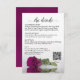 Cette belle carte de boîtier mariage est conçue pour vous donner plus d'espace pour toutes les informations dont vos invités pourraient avoir besoin, y compris RSVP, registre, réception, voyage, hébergement, etc. ainsi qu'un code QR personnalisable dirigeant vos invités vers votre site Web pour plus d'informations. La carte présente un design magnifique avec un rose couleur violet simple magenta, baies ou cassis et un titre de calligraphie en dentelle avec "les détails".