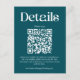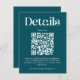 Carte D'accompagnement Détails du Mariage moderne Deep Turquoise QR Code