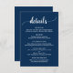 Carte D'accompagnement Détails du mariage, Script bleu Rustic Navy