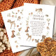 Présentant notre charmante conception de baby showers animaux de bois, parfait pour célébrer l'arrivée de votre petit. Conçu avec soin, ce design présente d'adorables illustrations de créatures boisées comme un renard, un cerf, un lapin, un hérisson, un ours et un écureuil, créant un thème fantaisiste et d'inspiration nature. Les couleurs boho douces et la typographie délicate apportent une touche d'élégance, ce qui en fait un choix charmant pour un baby shower sans distinction de genre. Notre invitation à baby shower animaux de bois donne le ton d'un événement mémorable et enchanteur.