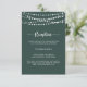 Cette ficelle illumine la carte d'enceinte de réception de mariage verte est parfaite pour un mariage rustique. Le design comprend de belles lampes à cordes peintes à la main dans un arrière - plan vert.