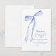 Ajoutez une touche réfléchie et amusante à votre baby shower avec cette jolie carte de fermeture à rabat pour bébé Bleu Bow! Conçue pour correspondre à une douche de bébé classique, cette carte présente un joli ruban bleu et une palette de couleurs bleu et blanc doux. Invités Invitations à apporter un pack de couches pour une chance de gagner un prix - un moyen facile d'aider les parents à être stock sur l'essentiel tout en ajoutant une touche ludique à la célébration. Imprimée sur un carton de haute qualité, cette carte de boîtier s'intègre parfaitement aux invitations et encourage les invités à participer à la tombola. C’est un ajout pratique mais adorable qui apporte une excitation supplémentaire à votre baby shower tout en assurant que tout le monde se joigne au plaisir!