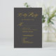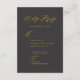 Élégant Gold Script Modern Grey | Carte de boîtier RSVP pour mariage minimaliste au charbon de bois. Célébrez votre journée spéciale avec ce design élégant et magnifique pour embellir votre occasion spéciale. Tous les textes sont pré-arrangés pour que vous personnalisiez facilement et rapidement avec vos propres détails.