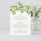 Carte d'information de mariage dans le jardin sauvage avec feuillage vert et organique peint en aquarelle, et modèle moderne de détail mariage.