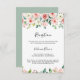 Cette élégante carte d'entrée de mariage fleurie d'automne est parfaite pour un mariage moderne. Le design présente des roses illustrées de rose, de blush et de blanc, des pivoines avec feuillage vert groupé en bouquets, accentuant les belles couleurs d'automne.