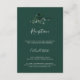Cette carte vert émeraude de réception de mariage est parfaite pour un mariage boho. Le design élégant et rustique présente des feuilles d'aquarelle vert foncé moody et des eucalyptus aux tons bohèmes modernes. Personnalisez cette carte détaillée de boîtier avec vos informations de réception et incluez également votre adresse de site mariage !