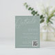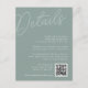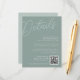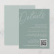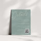 Carte tout-usage pour vos invitations de mariage, cette petite carte de détails fournit trois champs de texte personnalisés pour vos détails de mariage, le site Web, et un code QR pour les RSVP ou des informations supplémentaires. Conçu pour correspondre à notre collection de mariages Script Watermark. Notre colorway Eucalyptus est un élégant mélange de vert poussiéreux, avec des lettres vert pâle et blanc sur un arrière - plan vert sage.