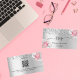 Un arrière - plan à l'aspect faux argenté décoré de confettis, scintille et de fleurs blanches et roses rousses. Personnalisez et ajoutez vos noms, URL du site mariage pour votre propre code QR et votre texte.