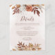 Mariage de style bohème moderne détails cartes d'enceinte avec des fleurs d'aquarelle et des feuilles de chute dans les tons de terre comme rouille brun, orange brûlé et terre cuite. Un choix parfait pour les mariages d'automne.