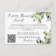 Cette élégante carte de boîtier minimaliste avec code qr sur votre site mariage vous aidera à demander un cadeau en argent pour votre fonds de maison éternelle au lieu de cadeaux traditionnels. La carte d'enceinte présente de magnifiques eucalyptus aquarelle, d'autres verdure, des plantes et du feuillage dans différents tons et tons de vert. Calligraphie de script élégante pour la typographie de carte de boîtier et police serif simple, facile à lire pour le site mariage, le nom du marié et du marié.