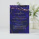 Design mariage moderne et tendance. Aquarelle géode avec éléments d'art numérique, nuances de bleu profond, violet, or rose et or (or n'est pas l'or réel mais la couleur), noir. Calligraphie élégante. Éléments géométriques. Gras, moderne, contraste, saturé, remarquable, unique.