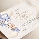 On Peut Attendre ! :) Ce petit ours attend la grande fête du bébé, assis dans une montgolfière construite à partir de petites ballons. Des aquarelles fantaisistes et une typographie moderne complètent le design. Personnalisez ce joli Baby shower Ours avec vos détails de baby shower facilement et rapidement. Appuyez sur le bouton customiser pour réorganiser et formater le style et le placement du texte.