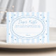 Add a fun detail to a baby boy shower with this blue diaper raffle insert card. “Diaper Raffle” is displayed in a handwritten blue script at the top, with space below for your custom raffle instructions. A designated area allows guests to write their name, making it easy to collect entries during the shower. The design features a hand-drawn scalloped oval frame, soft blue and white stripes, and scattered blue hearts, creating a sweet and polished look. Designed to coordinate with sweetheart-themed baby shower invitations, this insert is a thoughtful addition to your baby shower suite.
