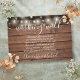 Ce mariage rustique qui souhaite bonne carte de boîtier dispose de jolies lampes à cordes et peut être personnalisé avec votre message spécial et les noms sur un arrière - plan de panneaux de bois. Conçu par Thisisnotme©