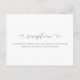 Carte de réception de mariage bleu et blanc, simple et chic, avec un magnifique script de calligraphie.