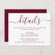 Fournissez à vos invités des détails importants avec cette élégante carte de boîtier mariage bordeaux moderne avec une police de caractères de script moderne. Éléments correspondants disponibles.
