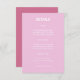 Cette carte élégante "Modern Italian Summer Mariage Details Enclôture Card" présente les détails de votre mariage un script serif propre, magnifiquement placé contre un joli mélange de teintes rose et lavande, ajoutant une touche de romantisme à votre journée spéciale. Idéal pour partager les informations essentielles sur votre mariage, y compris les informations sur l'hébergement et le registre, cette carte d'enceinte assure à vos invités tout ce dont ils ont besoin à portée de main. Associée à nos invitations de mariage Mariage d'été italien moderne, elle apportera une touche de finition parfaite à votre suite d'invitations de mariage et créera un look cohésif et élégant que vos invités adoreront.