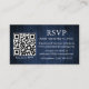 Carte RSVP minimaliste de mariage moderne avec votre code QR. Rustic Country Blue Wood Imprimer. Photo De Retour.