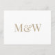 Carte D'accompagnement Mariage Réception Moderne Monogramme Or Blanc