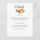 Ce tournesol rustique et les détails mariages rose en terre cuite sont parfaits pour un mariage de style champêtre. Cette carte de détails présente des fleurs d'aquarelle en jaune et orange rouille avec de la végétation sauge. Ajoutez tous les détails du mariage tels que les informations de réception, les informations sur l'hébergement et le site de votre mariage.