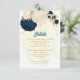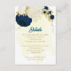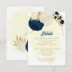 Fleurs bleu marine romantique & blanc avec mariage botanique feuille doré détails carte d'enceinte. Les détails de la parties scintillant sont simulés.