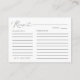 Carte D'accompagnement Minimal Black & White Recipe Card