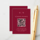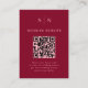 Ces cartes élégantes, modernes et colorées de boîtier mariage sont un moyen facile pour vos invités de visiter votre site mariage ou à RSVP à votre événement. Vous pouvez inclure votre propre code QR ainsi que votre site Web mariage afin que vos invités aient une façon simple de répondre. Ces cartes d'insertion de code QR présentent un design de texte simple bordeaux et rose pâle qui dégage un style minimaliste. Ajoutez vos initiales ou votre monogramme.