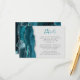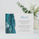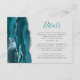 Le bord gauche de cette élégante carte de boîtier de détails mariages moderne comporte une bordure turquoise d'aquarelle bleue ornée d'une parties scintillant en faux argent. Le titre apparaît dans un script turquoise d'écriture manuscrite, avec le texte personnalisable ci-dessous en police de cuivre gris fusain sur un arrière - plan gris pâle. L'envers présente un design d'agate bleu et argent turquoise assorti.