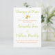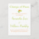 Annoncez que votre mariage a été reporté avec cette carte de boîtier "Changement de plan". Le dessus a "Changement de plan" écrit en vert avec un graphique en dessous de la feuille d'automne. Il y a ensuite alternant les polices orange et verte avec vos informations. Conception de Clipart Prettygrafik (https://www.etsy.com/shop/Prettygrafikdesign)