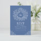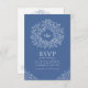 Carte D'accompagnement monogramme feuille bleu RSVP mariage QR Code