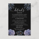 A bold and sophisticated Enclosure Card featuring dramatic dusty blue and grey floral illustrations against a stark black background. The crisp white typography and classic layout set an elegant, moody tone. Perfect for a formal evening or a sophisticated wedding.