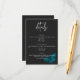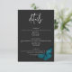 Cette carte de détails mariage présente un thème sombre et moody simple, mais étonnant. Un arrière - plan noir au charbon de bois foncé est la toile parfaite pour un seul papillon bleu turquoise, ses ailes étalées pour le vol dans le coin inférieur. Unique et élégant, ce design peut être utilisé pour n'importe quelle saison. Créé par Simply Farmhouse Press.