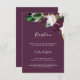 Cette carte moody prum violet d'encart de réception de mariage est parfaite pour un mariage moderne. L'élégant design floral présente des fleurs de tulipe violet et blanc de prune foncée avec des feuilles vert émeraude et des accents de feuilles d'or. Personnalisez cette carte détaillée de boîtier avec vos informations de réception et incluez également votre adresse de site mariage !
