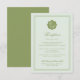 Moss green wedding reception card for a refined estate wedding, featuring a classic monogram crest and elegant calligraphy in a traditional formal and old money aesthetic. Designed for the timeless bride hosting a country club or classic southern wedding, with soft olive green tones and understated luxury. Pair with letterpress paper or silk ribbon for a polished, heirloom stationery suite.