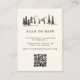 La carte d'enclos en ivoire chaud correspond à notre mariage rustique chic Mountain Sketch et aux invitations à l'événement, et présente une petite illustration des pics de montagne et des pins à feuillage persistant. Personnalisez avec votre date RSVP souhaitée et les instructions à RSVP à votre site Web mariage. Mettez à jour le modèle de code QR avec l'url désiré pour permettre aux clients de scanner et RSVP facilement.