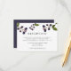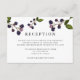 Conçue pour se coordonner avec notre collection de mariage florale aquarelle Blueberry, cette élégante carte de réponse RSVP botanique présente une branche de baies peintes à l'aquarelle en violet et vert surmontant les détails de votre réception ou de vos invités.