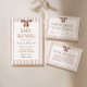 This neutral striped books for baby card features a brown watercolor bow and elegant typography for a soft, elevated baby shower detail.