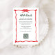 Cette carte d'information élégante et chic pour les invités d'un mariage de fêtes présente un cadre illustré dessiné à la main rouge avec un nœud, et un script manuscrit vert foncé stylé pour une invitation de mariage de style parisien ou français pendant la saison de Noël. Vous pouvez utiliser ces cartes pour les directions, les informations de réception ou de transport, les informations d'hôtel ou d'hébergement, et tout autre détail de mariage que vous souhaitez que vos invités connaissent. Comprend également un code QR scannable.