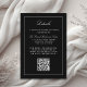 Une carte élégante de détails de mariage en noir classique pour fournir à vos invités mariages les détails dont ils auront besoin autour de votre mariage. Vous pouvez éditer le modèle texte avec les informations de l'hôtel, les itinéraires, les rencontres spéciales et les réceptions et plus encore. Ce modèle comprend un code QR pour inclure votre site mariage où vos invités mariages peuvent trouver tous les détails de votre journée spéciale. Modifiez simplement le modèle de texte comme vous le souhaitez.