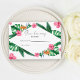 Tropical Palms Aquarelle Nuptiale invitation douche. Le design comprend un élégant bouquet d'aquarelle de plage classique, de la verdure et des fleurs, dont l'hibiscus rose vif, l'oiseau orange et bleu du paradis, la verdure verte et la feuille de palmier vert foncé.