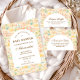 A whimsical watercolor design featuring a playful mix of pastel summer animals surrounded by tropical leaves, seashells, starfish, and soft botanical details. The cheerful palette of peach, mint, coral, and soft blue creates a light storybook atmosphere, while the elegant arch layout keeps the celebration details beautifully framed and easy to read. Perfect for a warm, joyful summer celebration with a charming nursery aesthetic.