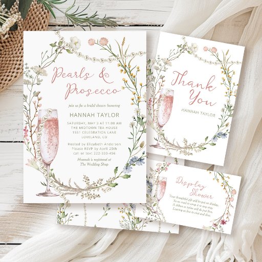 Carte D'accompagnement Pearls et Prosecco Bridal Display Douche