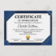 Carte D'accompagnement Professional Certificate of Appreciation Blue Gold