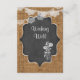 Cette carte moderne et tendance de boîte aux lettres de vœux de mariage à l'aspect ardoise noir et blanc a un aspect toile de jute marron FAUX rustique avec des illustrations d'un pot Mason avec des fleurs, des feuilles et des branches à l'intérieur, et deux banderoles en dentelle en haut qui correspondent à l'invitation de mariage présentée ci-dessous. Avec ses couleurs polyvalentes, vous pouvez l'utiliser toute l'année lors de votre mariage rustique ou champêtre au printemps, en été, en automne ou en hiver. Vous pouvez également modifier le texte pour en faire une carte d'hébergement, une carte de registre de cadeaux, une carte d'itinéraire ou une carte d'informations de mariage. Elle est présentée ici sur du papier de base. Elle est facilement personnalisable avec vos propres informations. ****Veuillez noter que tout sera imprimé tel qu'il apparaît sur votre écran. Zazzle ne modifiera rien pour les fautes de frappe ou le désalignement, etc., et je ne le verrai pas une fois que vous l'aurez commandé. Si vous avez besoin d'aide pour la formulation, veuillez m'envoyer un e-mail AVANT de commander. AUSSI, certaines des différentes formes PEUVENT couper des parties du design, il est donc préférable de me contacter