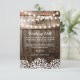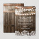 Carte de puits de vœux de mariage country avec un fond de tonneau en bois rustique, des guirlandes lumineuses, un design floral de baby's breath, votre monogramme et un modèle de puits de vœux élégant et modifiable.