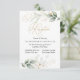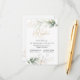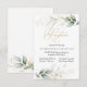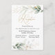 Carte de réception avec une illustration de feuillage vert et or dans le style aquarelle.